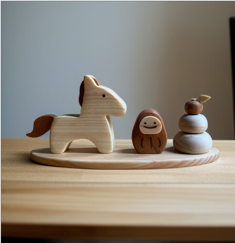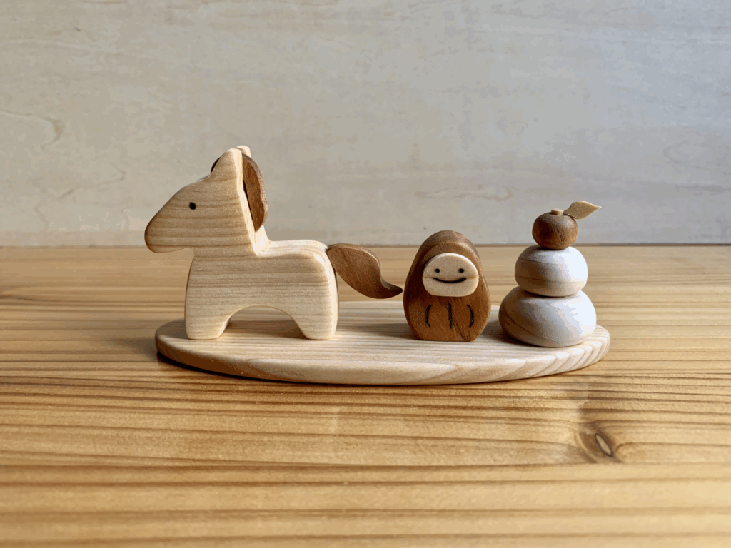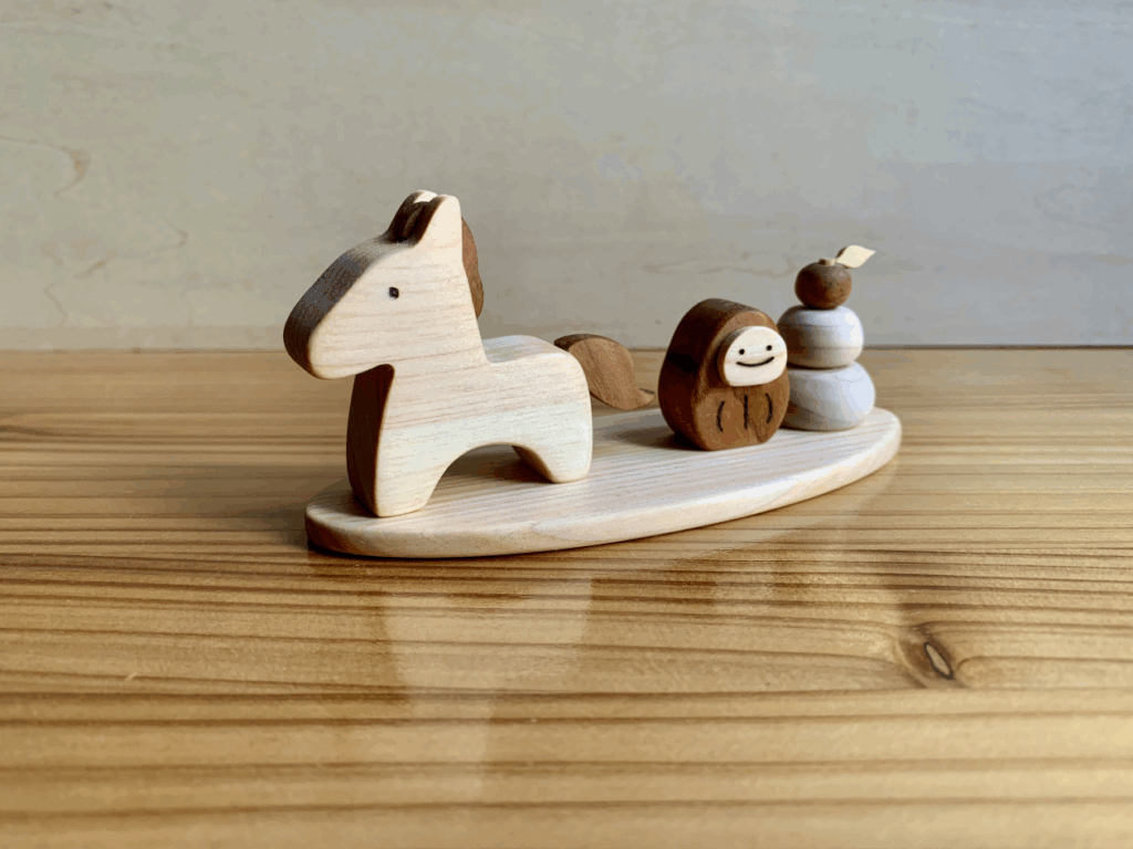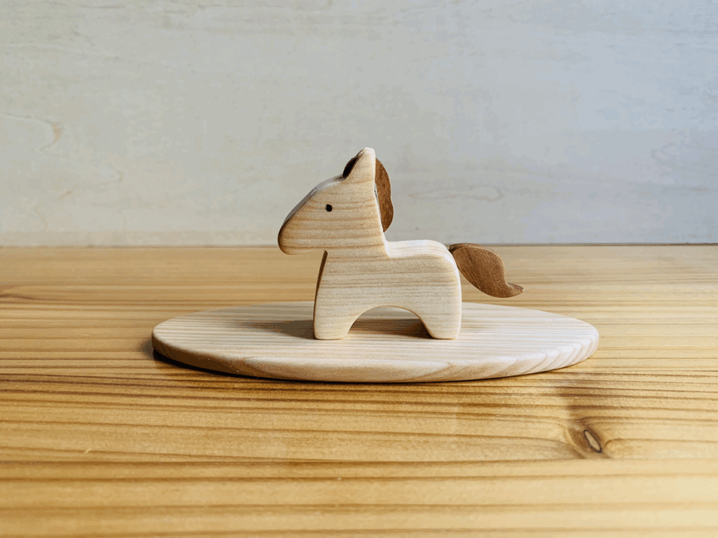 2026年の干支・午をモチーフにしたヒノキのオブジェで、