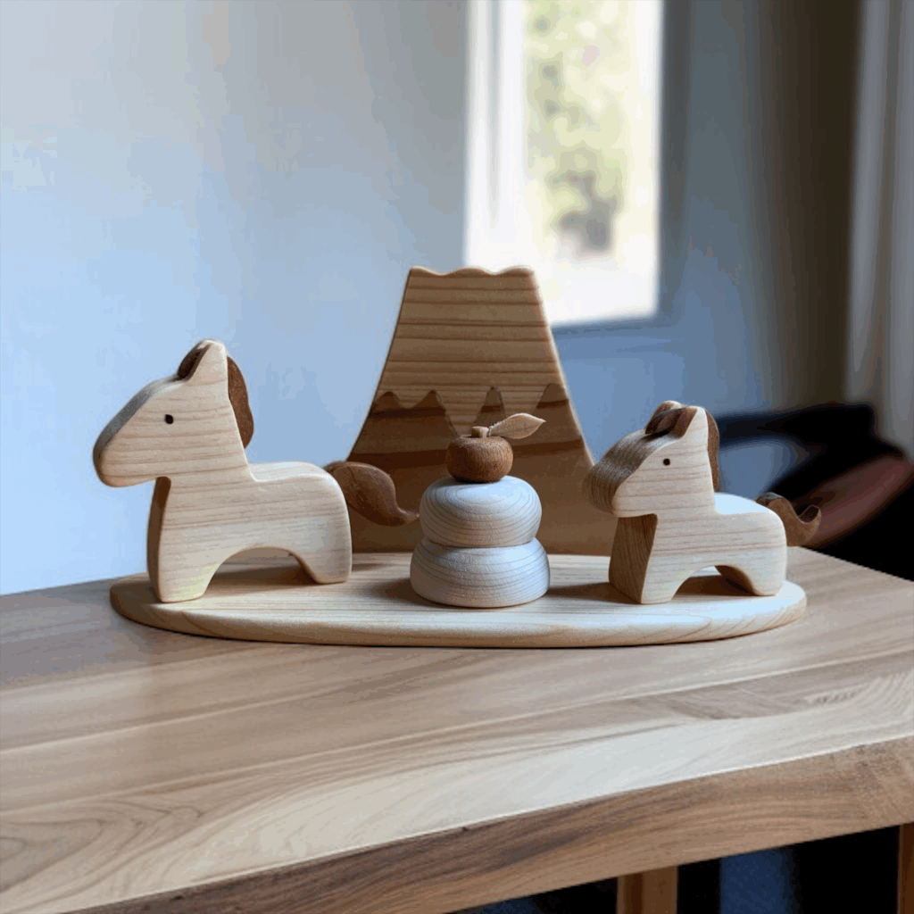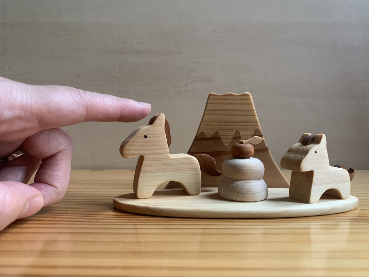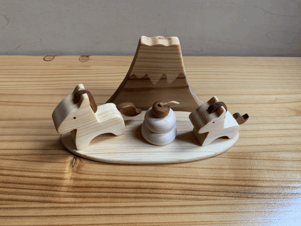 【素材】:岐阜県産東濃ヒノキ(馬・富士山(一部分)鏡餅・飾り台)