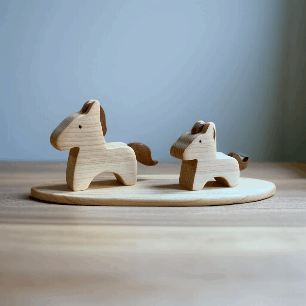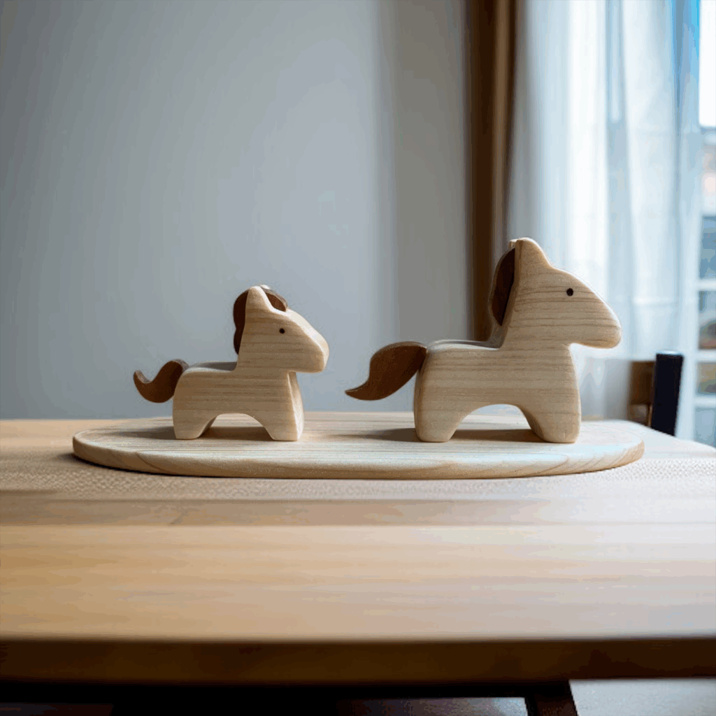 ① 午(馬)親子セット(親馬+仔馬+飾り台Mサイズ)